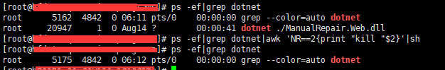 Linux中使用ps、awk、sh一起批量杀死所有的dotnet进程